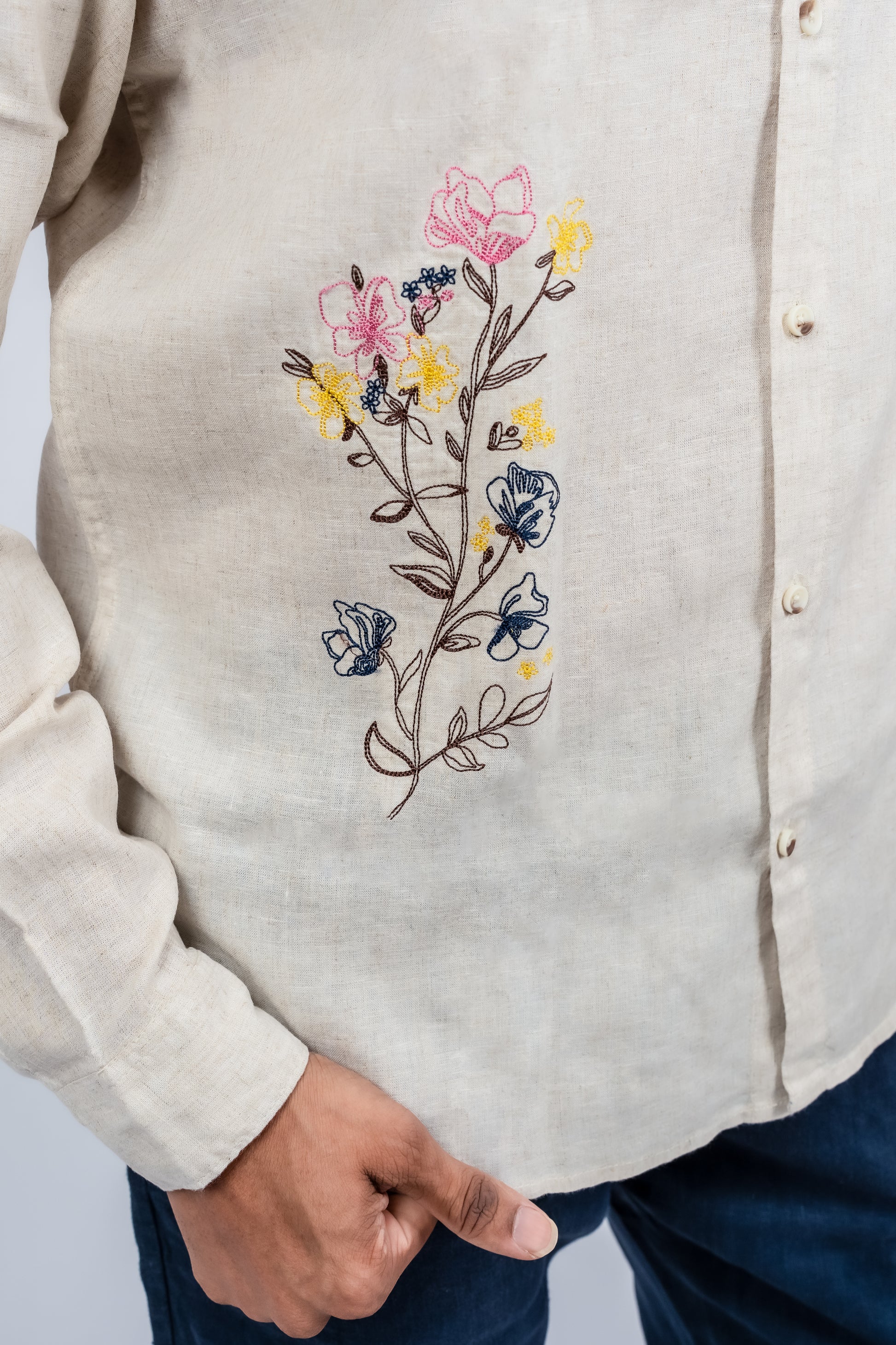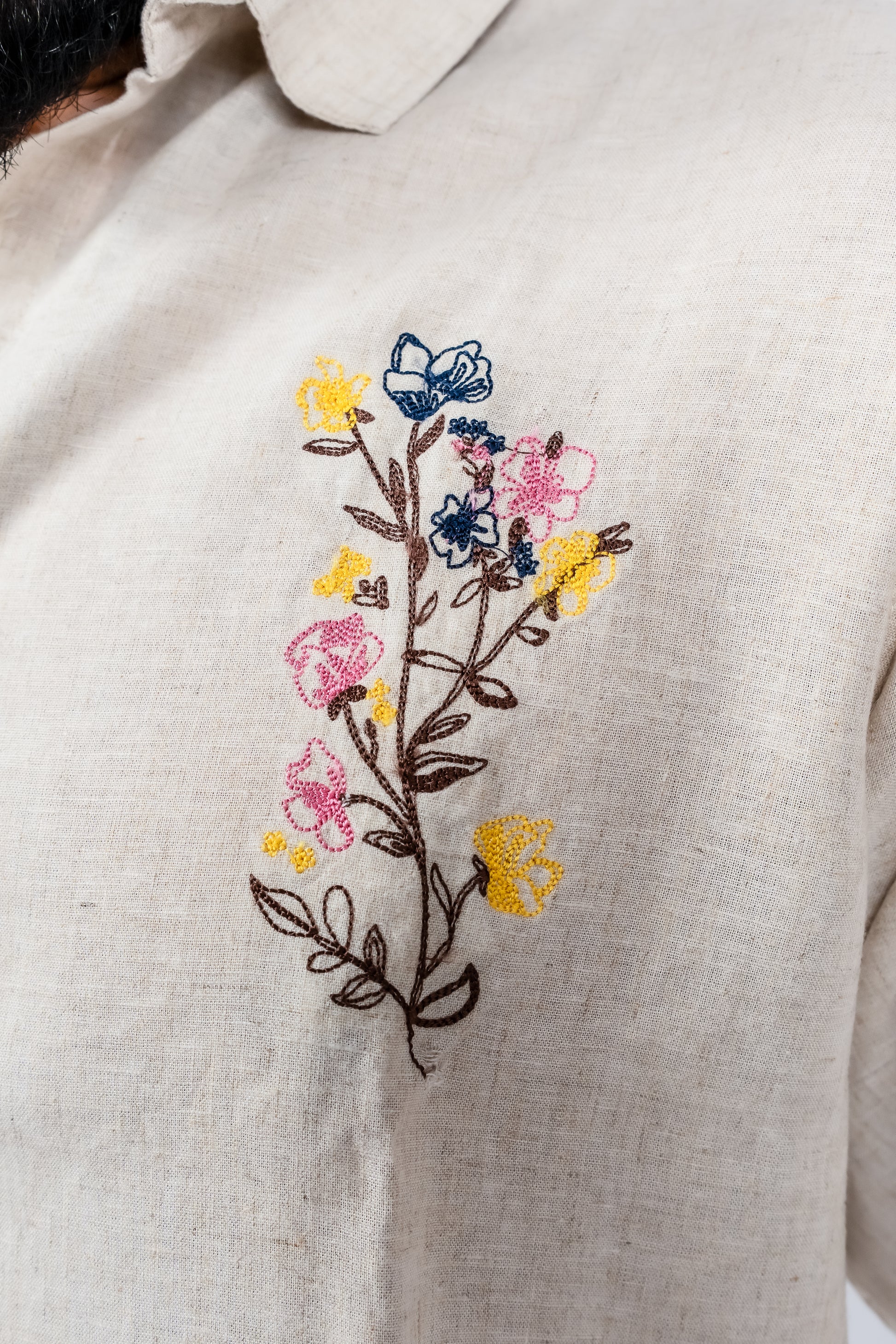 | Crafted from an 85% cotton and 15% linen blend with a soft bio wash finish, this full-sleeve casual shirt features a natural linen color and a relaxed soft collar. Detailed with delicate flower embroidery, it offers breathable comfort and effortless style—perfect for laid-back, everyday wear. Size & Fit: Fit: Tailored Fit Size: Model is wearing size XL, model height is (6.3 feet) Wash Care: Machine wash Specification: Casual wear 85% cotton 15% linen Soft collar Embroidered Note : The actual colour of the product may vary slightly due to photographic lighting sources or your device's screen. |