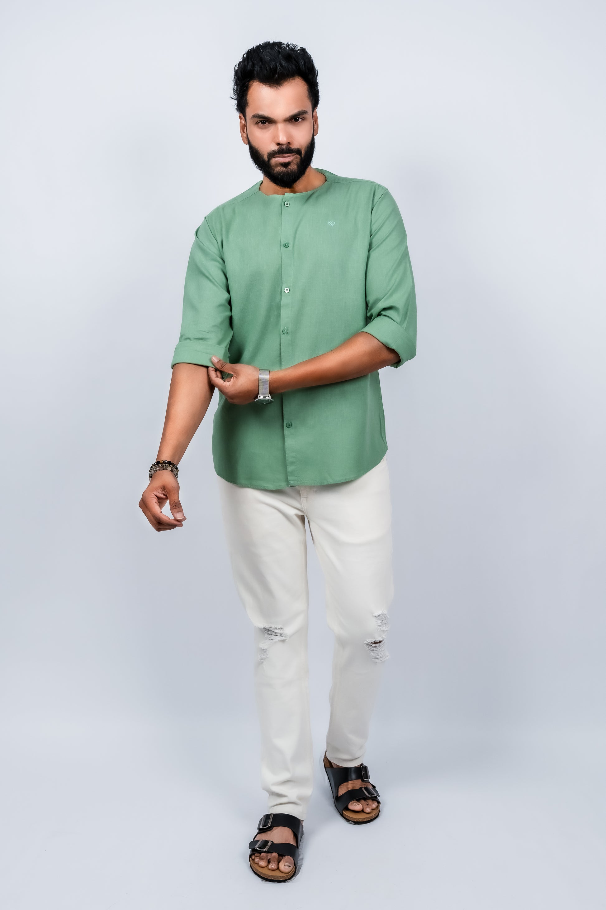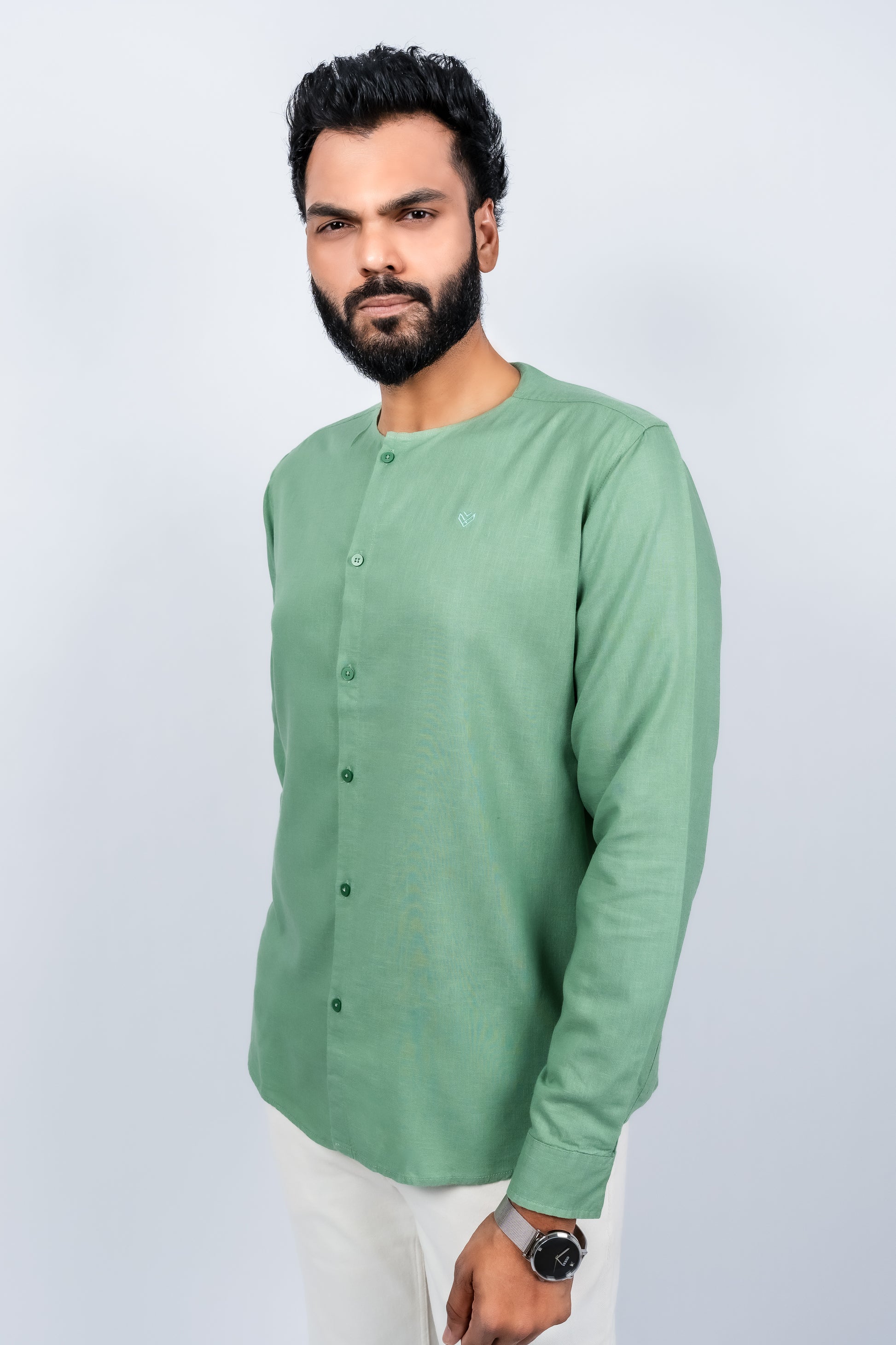 | This plain green full-sleeve collarless shirt is crafted from a breathable 85% cotton and 15% linen blend with a soft bio wash finish. Featuring a liberal fit and minimalist design, it offers effortless comfort and a fresh, modern style ideal for smart-casual occasions. Size & Fit: Fit: liberal Fit Size: model is wearing size XL, model height is (6.3 feet) Wash Care: Machine wash Specification: casual wear 85% cotton 15% linen collar less Note : The actual colour of the product may vary slightly due to photographic lighting sources or your device's screen. |