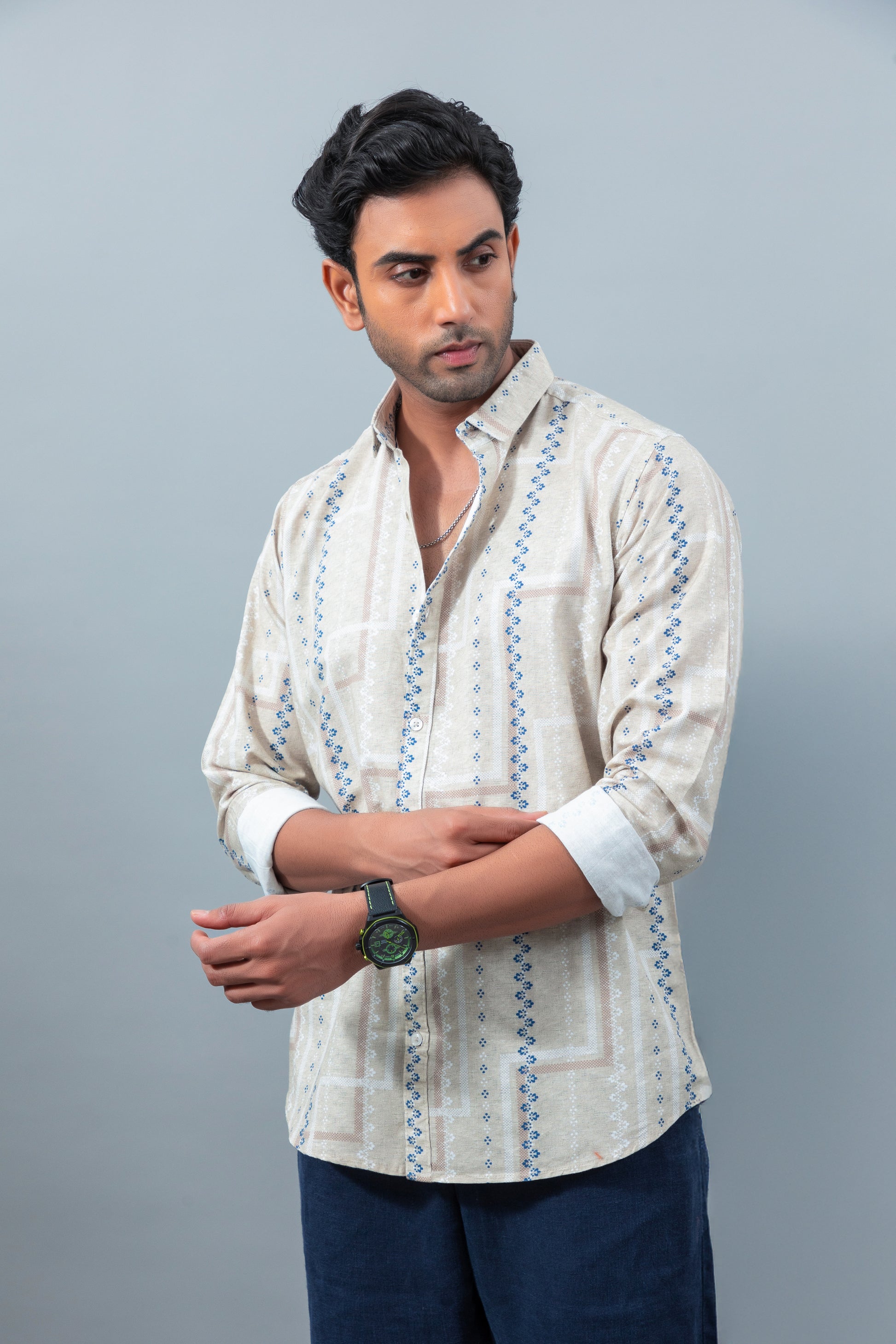 Men's premium tailored fit printed soft collar casual shirt